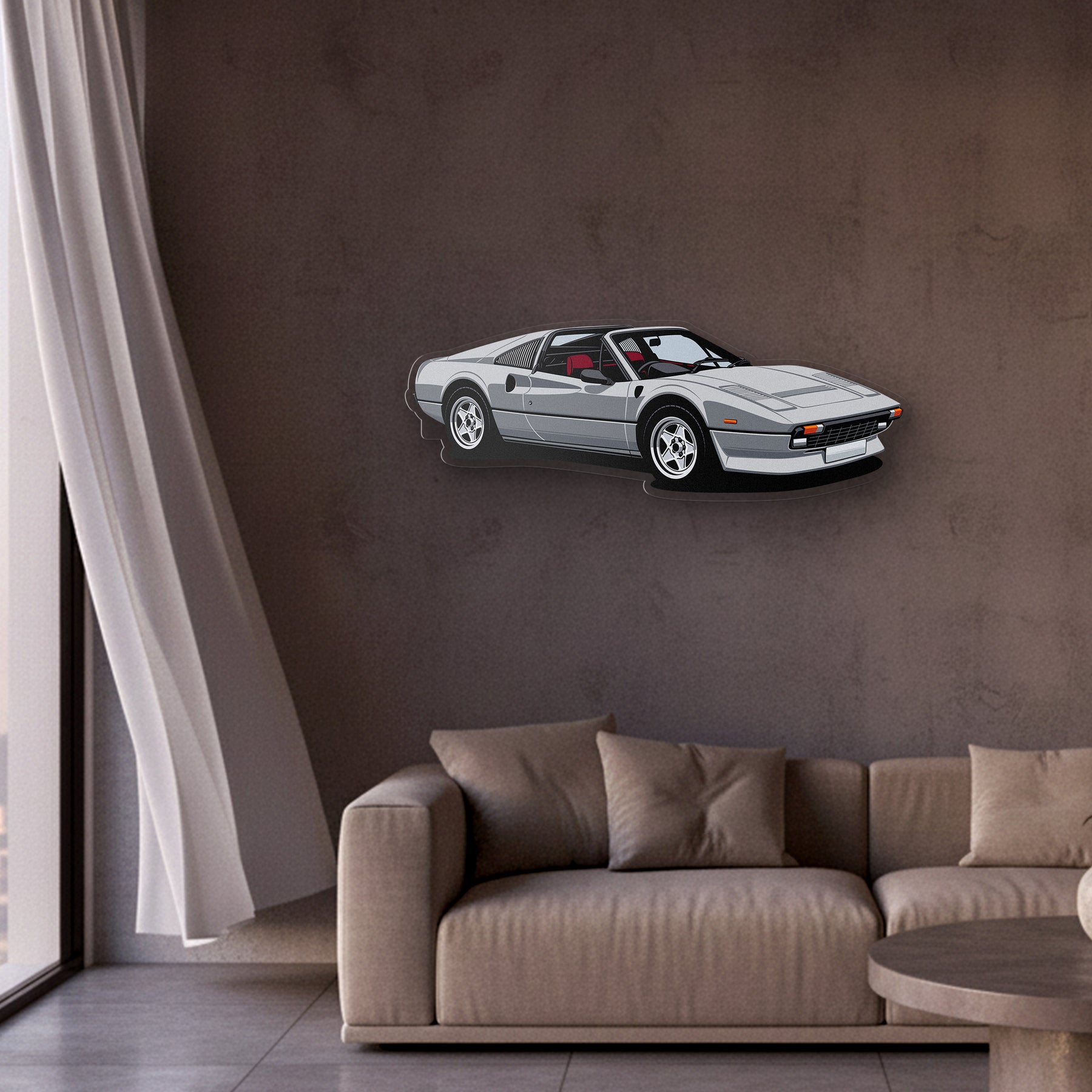 This eye-catching 308 GTS Front Angle Acrylic Print will add a touch of vibrancy and elegance to your room, office, or garage, and will catch the attention of any racing or car enthusiast.